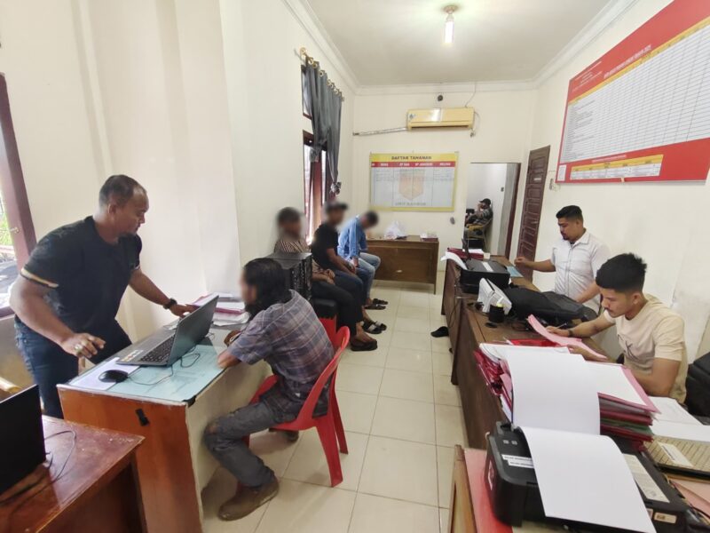Para pria yang ditangkap menjalani pemeriksaan di Polres Aceh Utara. Foto: Humas Polres Aceh Utara