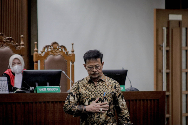 Terdakwa kasus pemerasan dan gratifikasi di Kementerian Pertanian Syahrul Yasin Limpo bersiap untuk menjalani sidang pembacaan tuntutan di Pengadilan Tipikor, Jakarta, Jumat (28/6/2024). Foto: Antara/M Risyal Hidayat