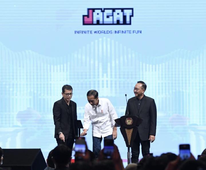 “Dan juga kesempatan memperkenalkan produk-produk kebanggaan Indonesia secara global,” ujar Jokowi dalam acara tersebut.