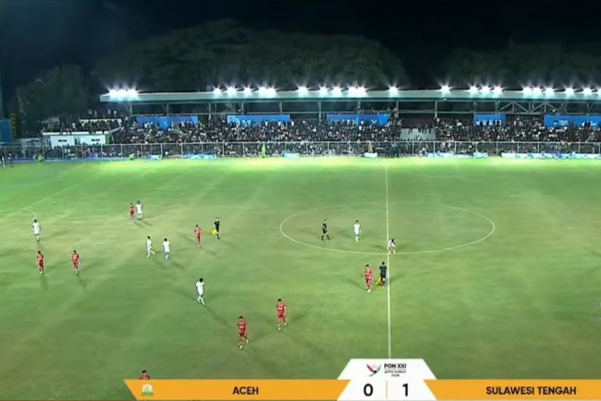 Banda Aceh – Laga tim sepak bola Aceh versus Sulawesi Tengah (Sulteng) berlangsung dalam tensi tinggi di babak pertama di Stadion H Dimurtala, Lampineung, Banda Aceh, Sabtu malam, 14 September 2024.