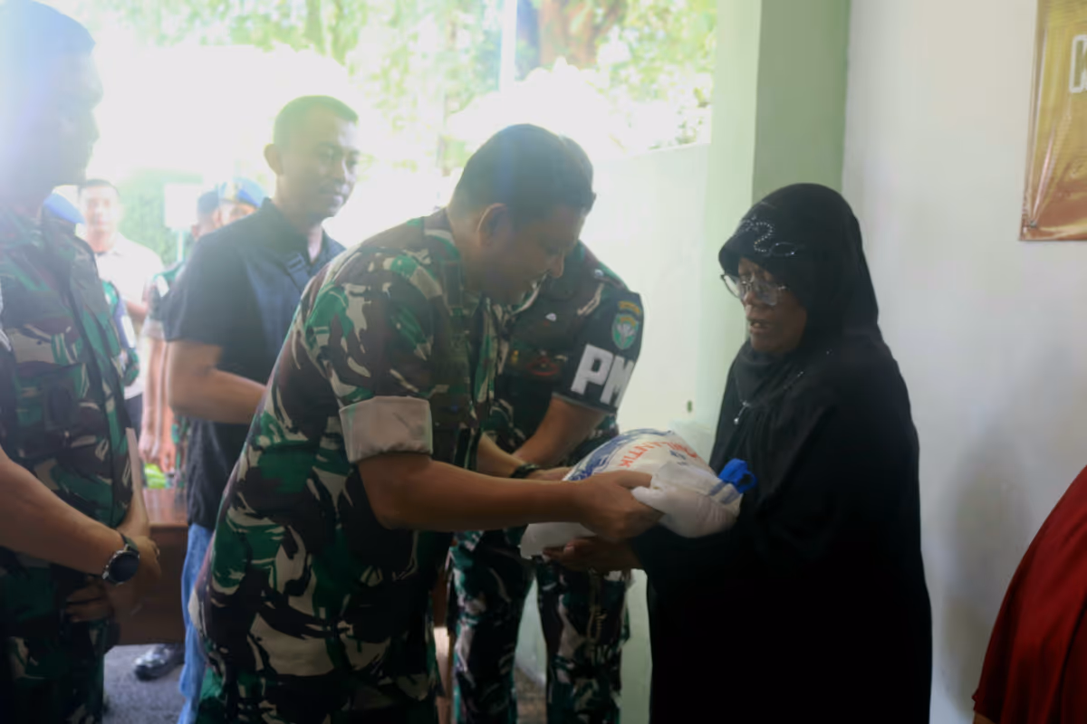 Lhokseumawe – Komandan Korem 011 Lilawangsa Kolonel Inf Ali Imran membagikan paket sembako gratis kepada 250 warga di Mako Detasemen Polisi Militer IM/1 Lhokseumawe, Banda Sakti, Lhokseumawe, Sabtu, 12 Juli 2025.