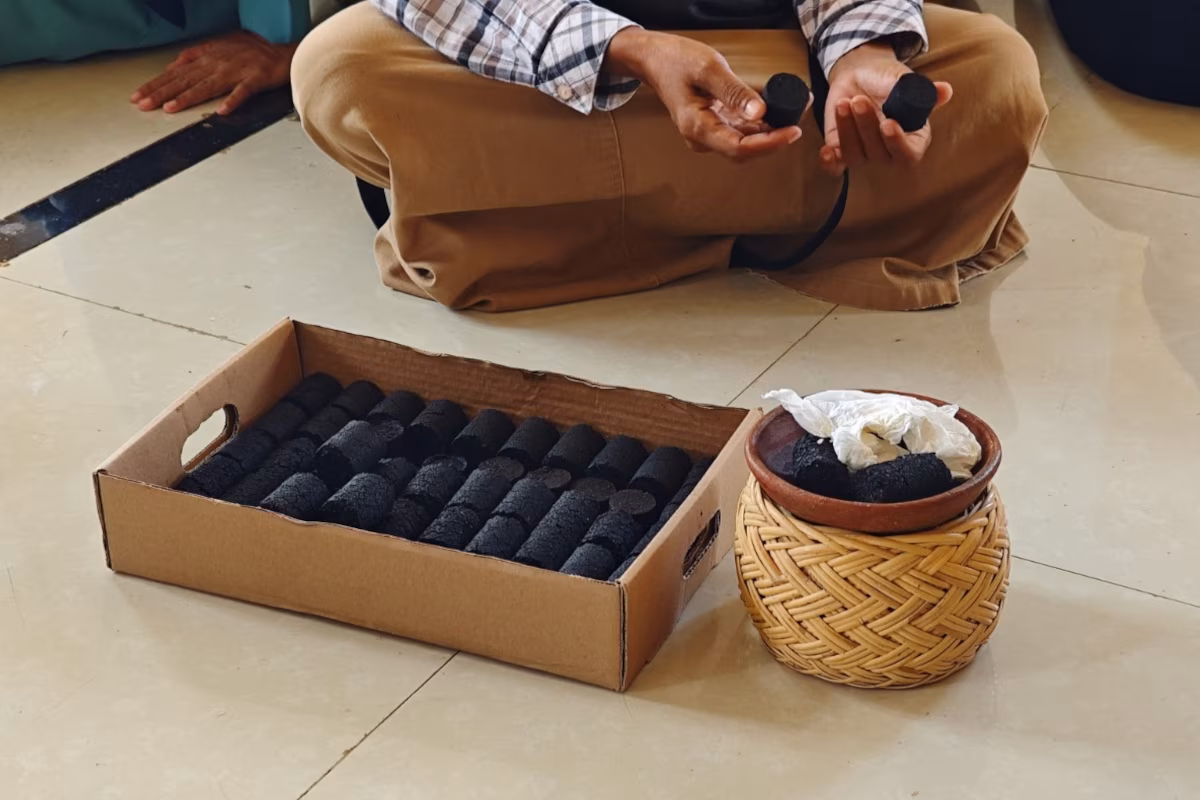 Arang atau briket dari ampas kopi produksi UMKM Gampong Lamkeunung, Aceh Besar. Foto: Bea Cukai Aceh