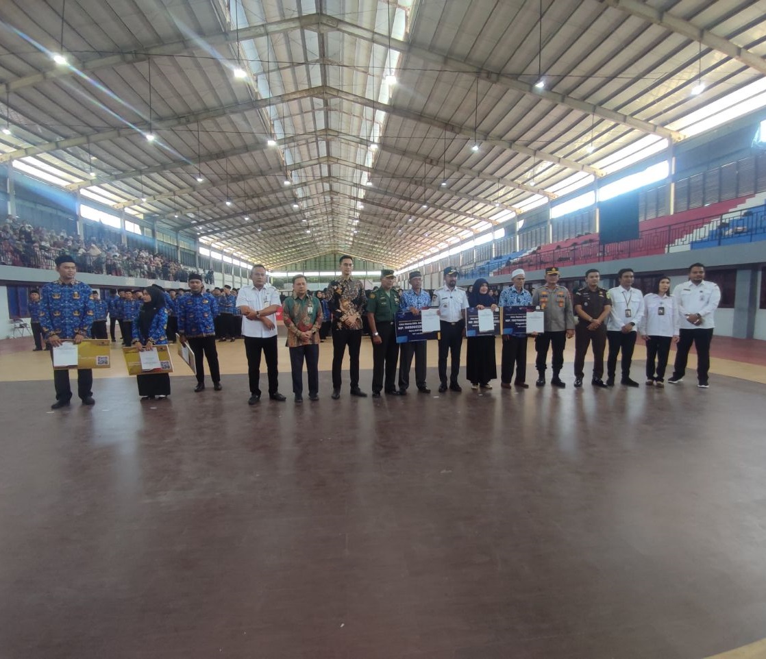 Idi – Bupati Aceh Timur, Iskandar Usman Al-Farlaky menyerahkan SK pengangkatan kepada 219 Calon Pegawai Negeri Sipil (CPNS) formasi tahun 2024, di Gedung Idi Sport Center (ISC), Rabu, 28 Mei 2025.