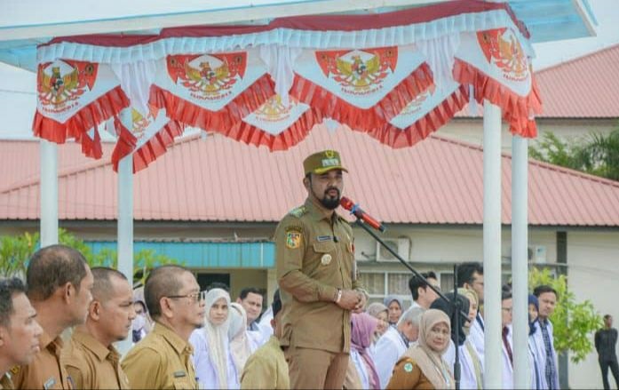 Idi – Bupati Aceh Timur, Iskandar Usman Al-Farlaky memimpin apel bersama usai libur hari raya Iduladha 1446 H di Rumah Sakit Umum Daerah (RSUD) dr. Zubir Mahmud, Selasa, 10 Juni 2025. Apel atau upacara itu diikuti jajaran direksi, dokter, tenaga kesehatan, serta seluruh staf rumah sakit pelat merah tersebut.