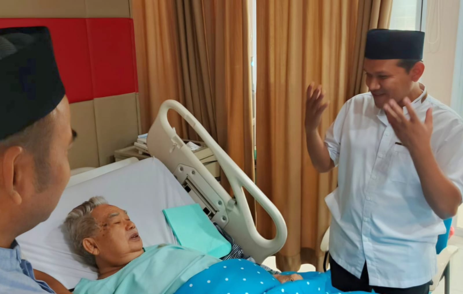 Banda Aceh – Calon Wakil Gubernur Aceh Fadhlullah atau Dek Fad, besuk Zaini Abdullah atau Abu Doto, Gubernur Aceh periode 2012–2017, yang dirawat di Rumah Sakit Umum Daerah dr. Zainoel Abidin (RSUDZA), Banda Aceh, Jumat, 25 Oktober 2024.