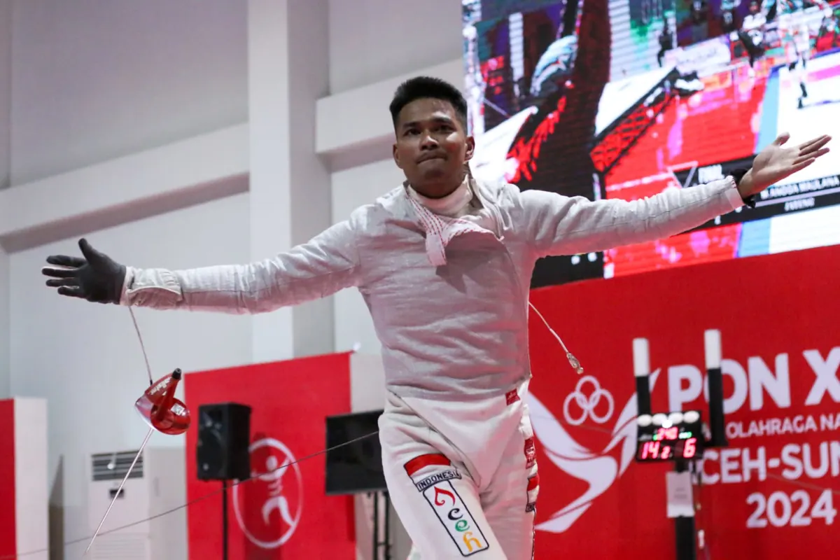 [FOTO] Fencer Aceh Indra Agus Setiawan Rebut Emas Anggar Sabel Perorangan Putra