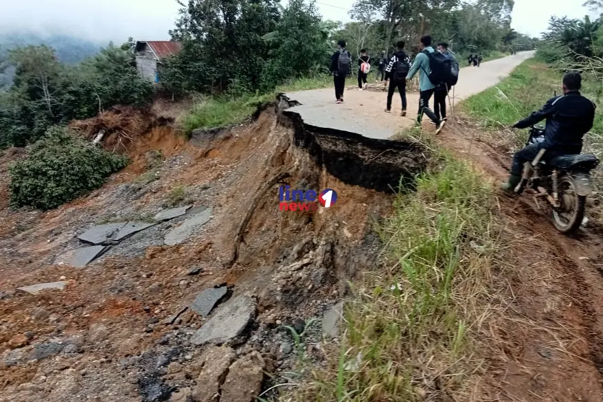Jalan aspal amblas akibat longsor di Jalur KKA-Bener Meriah, Rabu, 3 Desember 2025. Foto: Line1.News/Roni