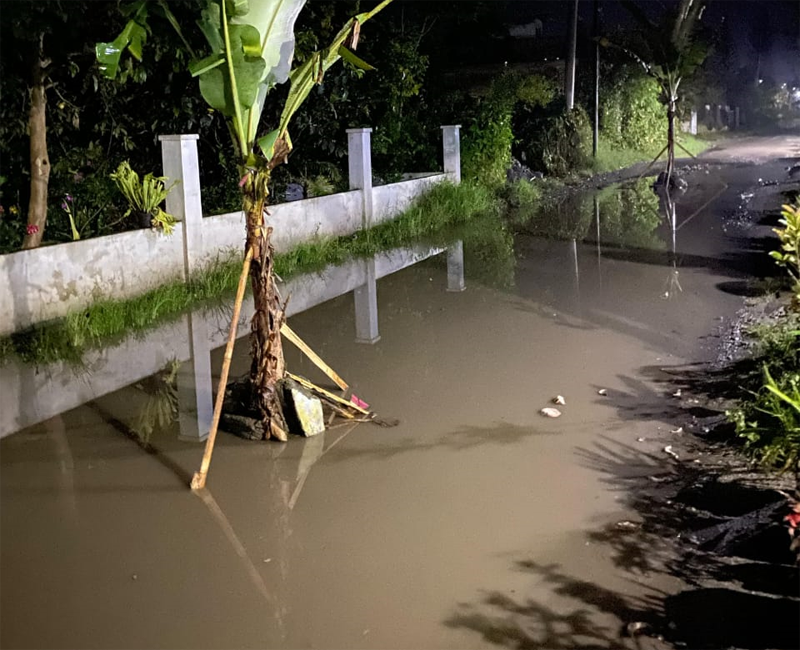 [Badan jalan tergenang air di Kampung Kung. Foto: Line1.News/Erwin Sar]