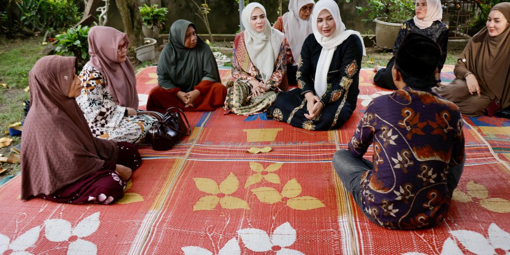 Lhoksukon – Istri Gubernur Aceh, Marlina Muzakir atau Kak Na, bertakziah ke rumah duka almarhum Hasfiani alias Imam di Desa Uteun Geulinggang, Kecamatan Dewantara, Aceh Utara, Selasa, 18 Maret 2025.