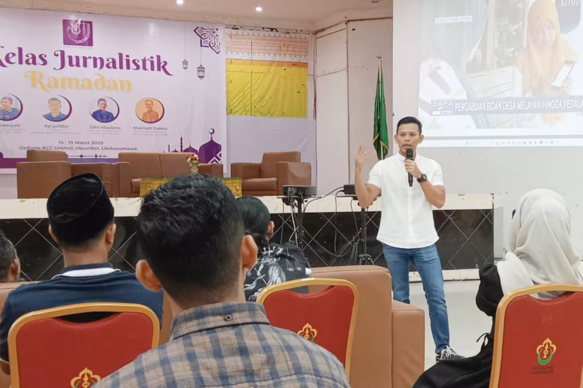 KJR 2025 AJI Lhokseumawe diikuti puluhan jurnalis muda dan mahasiswa, digelar di Gedung ACC Unimal sejak Jumat hingga Sabtu, 14-15 Maret 2025.