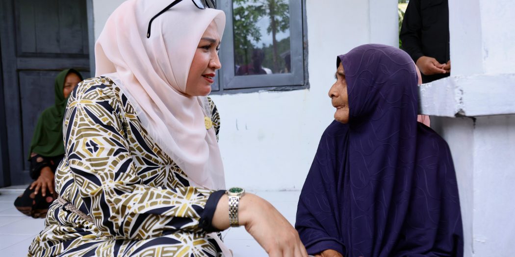 Ketua TP PKK Aceh Marlina Muzakir mengobrol dengan Nek Aminah di Gampong Lampuyang Kecamatan Pulo Aceh, Aceh Besar, Senin (13/10/2025). Foto: Humas Pemerintah Aceh