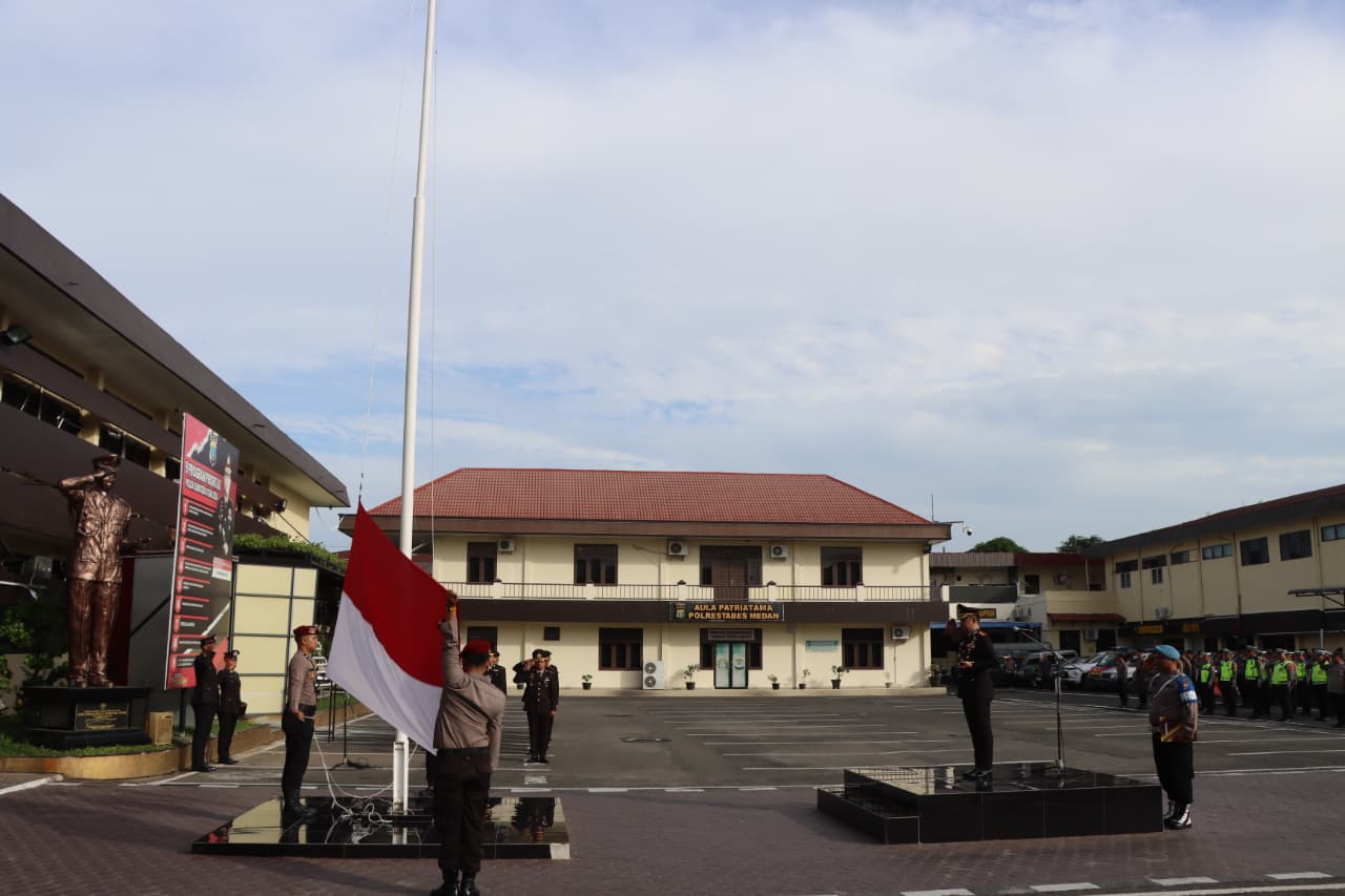 Upacara dimulai pukul 07.30 WIB. Kapolrestabes Medan Kombes Pol Jean Calvijn Simanjuntak bertindak sebagai inspektur upacara, dan Iptu Dian Pranata Simangunsong sebagai komandan upacara. Kegiatan berlangsung khidmat dan penuh makna, dihadiri Wakapolrestabes, para pejabat utama, Kapolsek jajaran, serta personel gabungan dari Satfung, Polsek, dan ASN Polrestabes Medan.