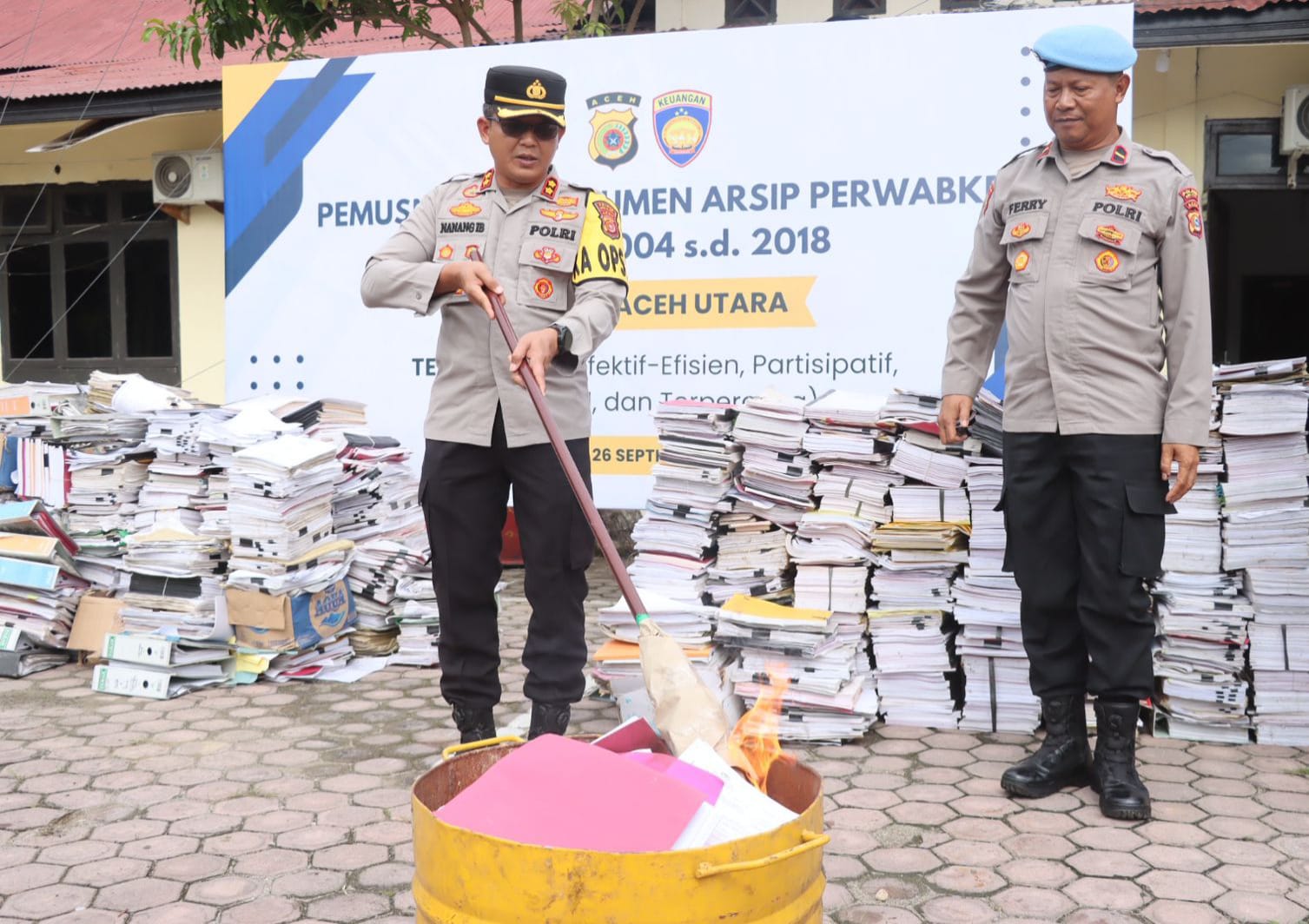 Pemusnahan dokumen itu, tambah Nanang, tertuang dalam Berita Acara Nomor BAP/06/IX/2024 Res Aceh Utara, dan berdasarkan Undang-Undang Nomor 43 Tahun 2009 tentang Kearsipan.