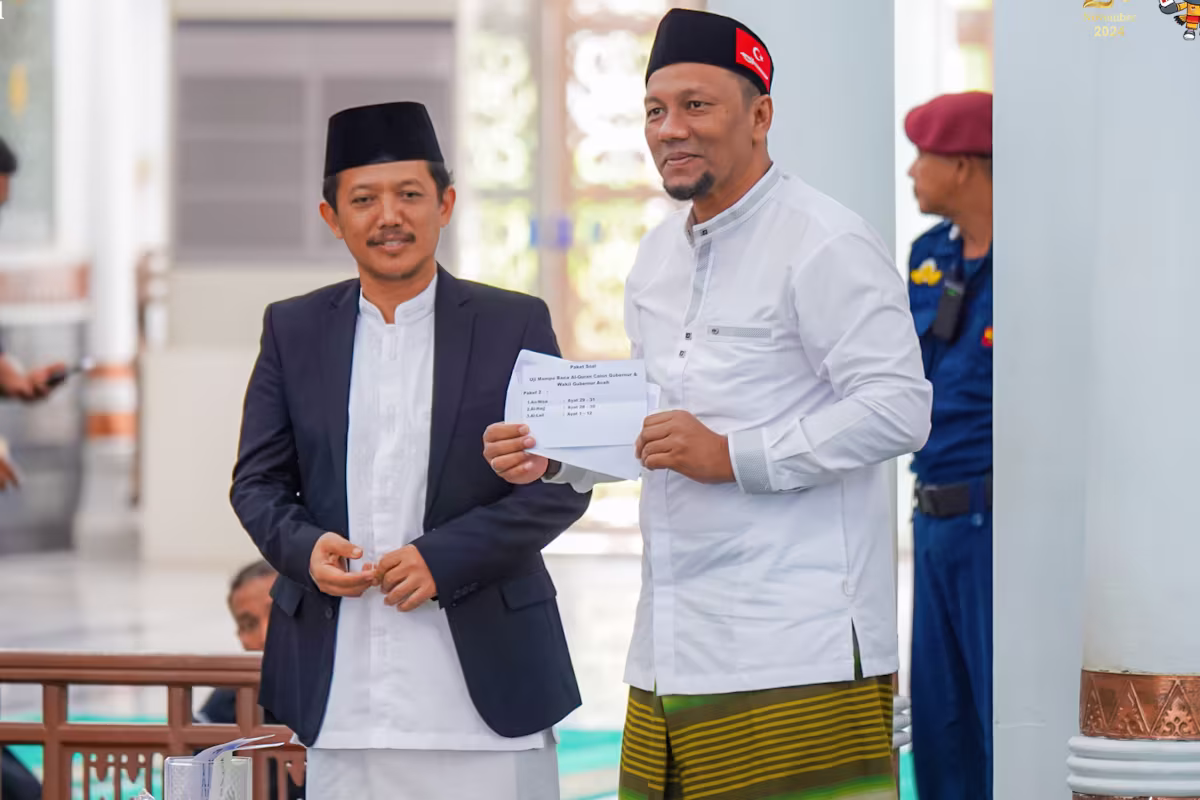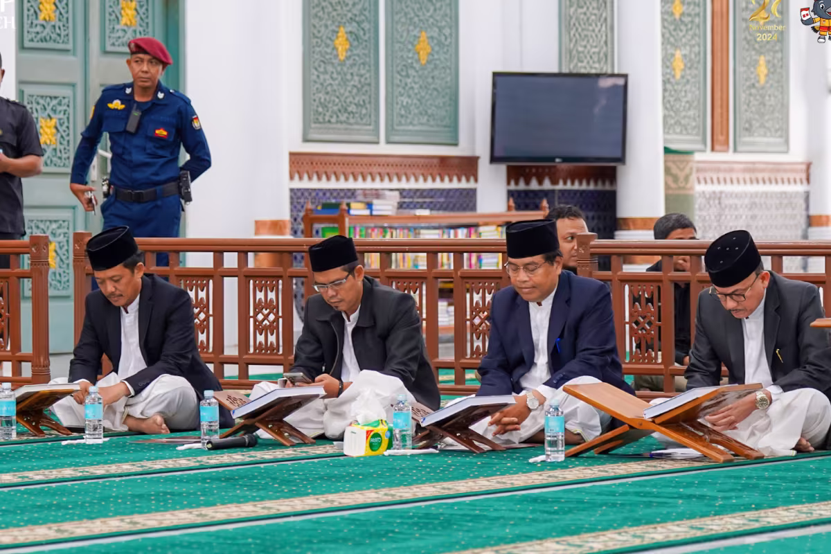 Banda Aceh – Komisi Independen Pemilihan (KIP) Aceh menyelenggarakan uji mampu baca Al-Qur’an calon pengganti dalam pemilihan gubernur dan Wakil Gubernur Aceh, di Mesjid Raya Baiturrahman Banda Aceh, 18 September 2024. Uji mampu baca Al-Qur’an itu khusus untuk Muhammad Fadhil Rahmi atau Syeh Fadhil sebagai bakal calon wakil gubernur Aceh pendamping bakal calon gubernur Bustami Hamzah di Pilkada Aceh 2024. Hadir Ketua KIP Aceh Saiful dan Wakil Ketua Agusni AH dan Anggota Muhammad Sayuni dan Panwaslih Aceh. Adapun tim uji mampu baca Al-Qur’an dipimpin oleh Ketua Profesor Muhibbuthabry dari MPU Aceh, Hamli Yunus dari Kemenag Aceh, Mardhatillah dari LPTQ Aceh. Foto-foto: KIP Aceh.