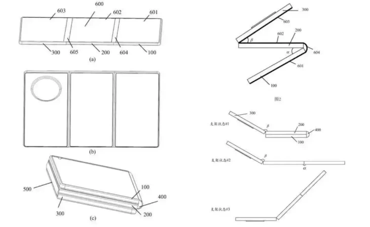 Dokumen paten Huawei pada Maret lalu memperlihatkan gagasan Huawei untuk ponsel lipat tiga berbentuk “S”.