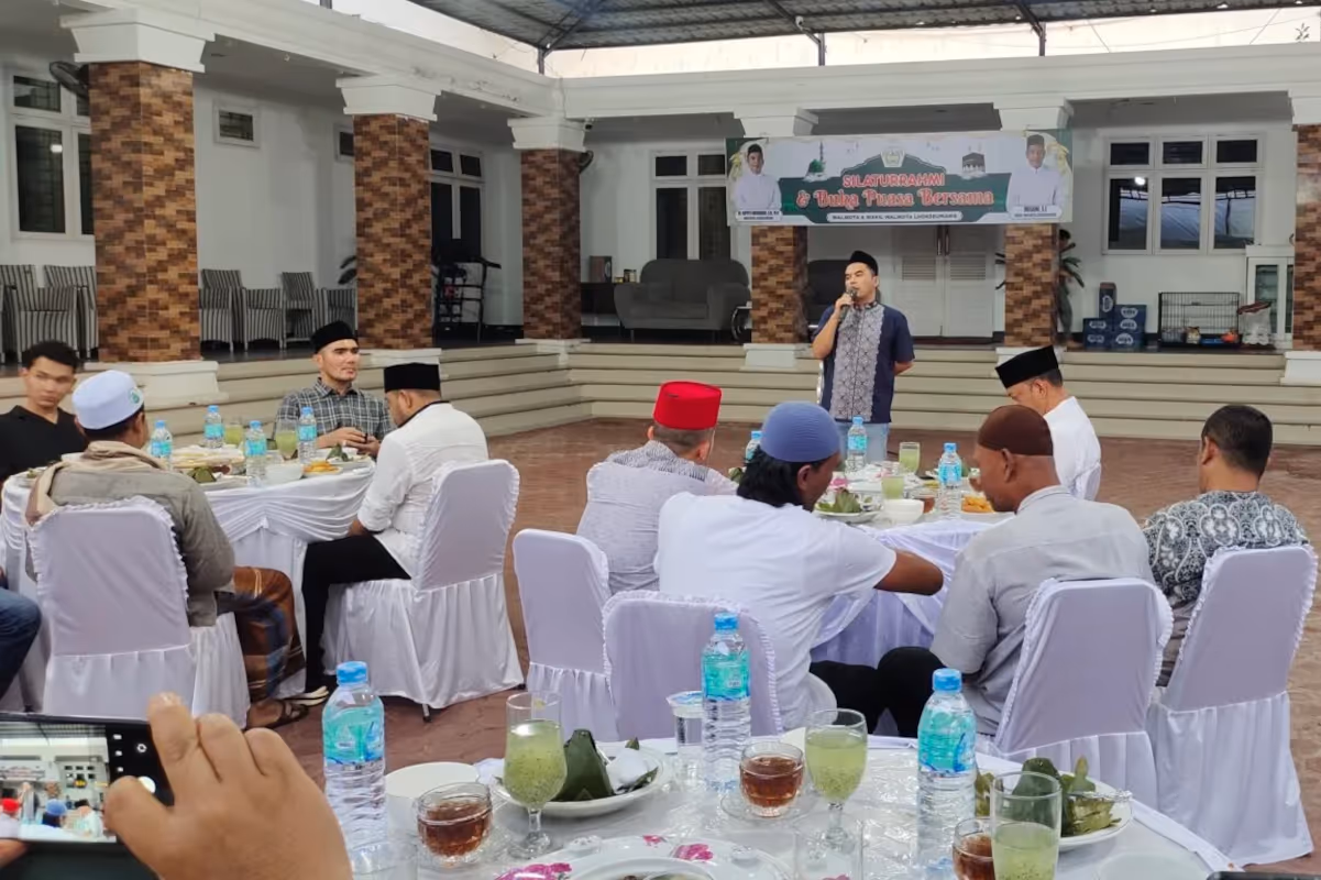 Lhokseumawe – Wali Kota Lhokseumawe Sayuti Abubakar berbuka puasa bersama atau bukber bareng warga di halaman Guest House Pemerintah Kota Lhokseumawe, Kamis, 27 Maret 2025.